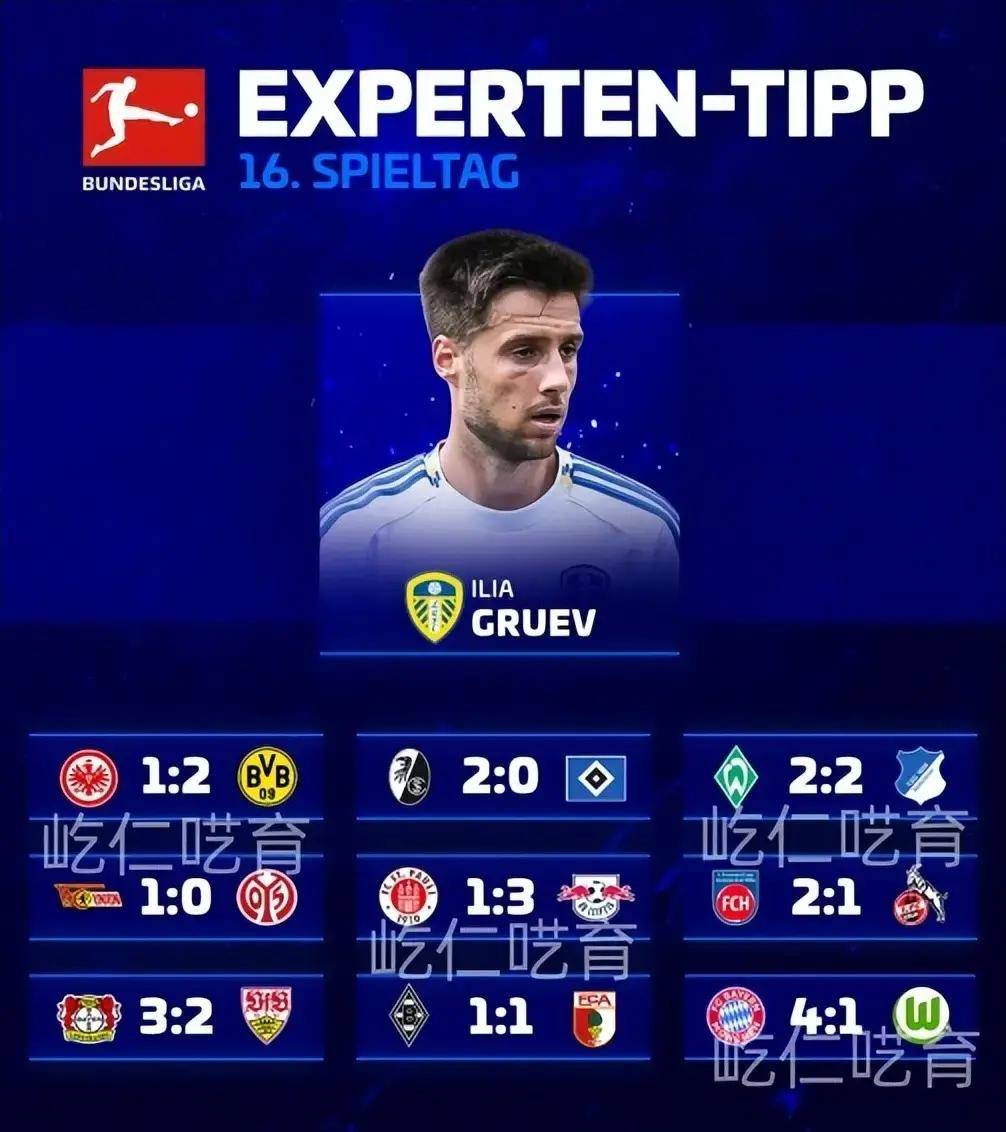 根据这期预测,法兰克福会1 - 2输给多特蒙德,拜仁慕尼黑会4 - 1大胜沃尔夫斯堡。比赛结果还有勒沃库森3 - 2击败斯图加特,RB莱比锡3 - 1战胜圣保利等。虽说这些比分娱乐性很强,但确实给德甲比赛增加了话题和观赛期待。