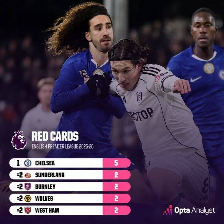 北京时间1月8日消息,2025-26赛季英超第21轮,切尔西客场1-2不敌富勒姆,蓝军边后卫库库雷利亚在上半场被直红罚下。